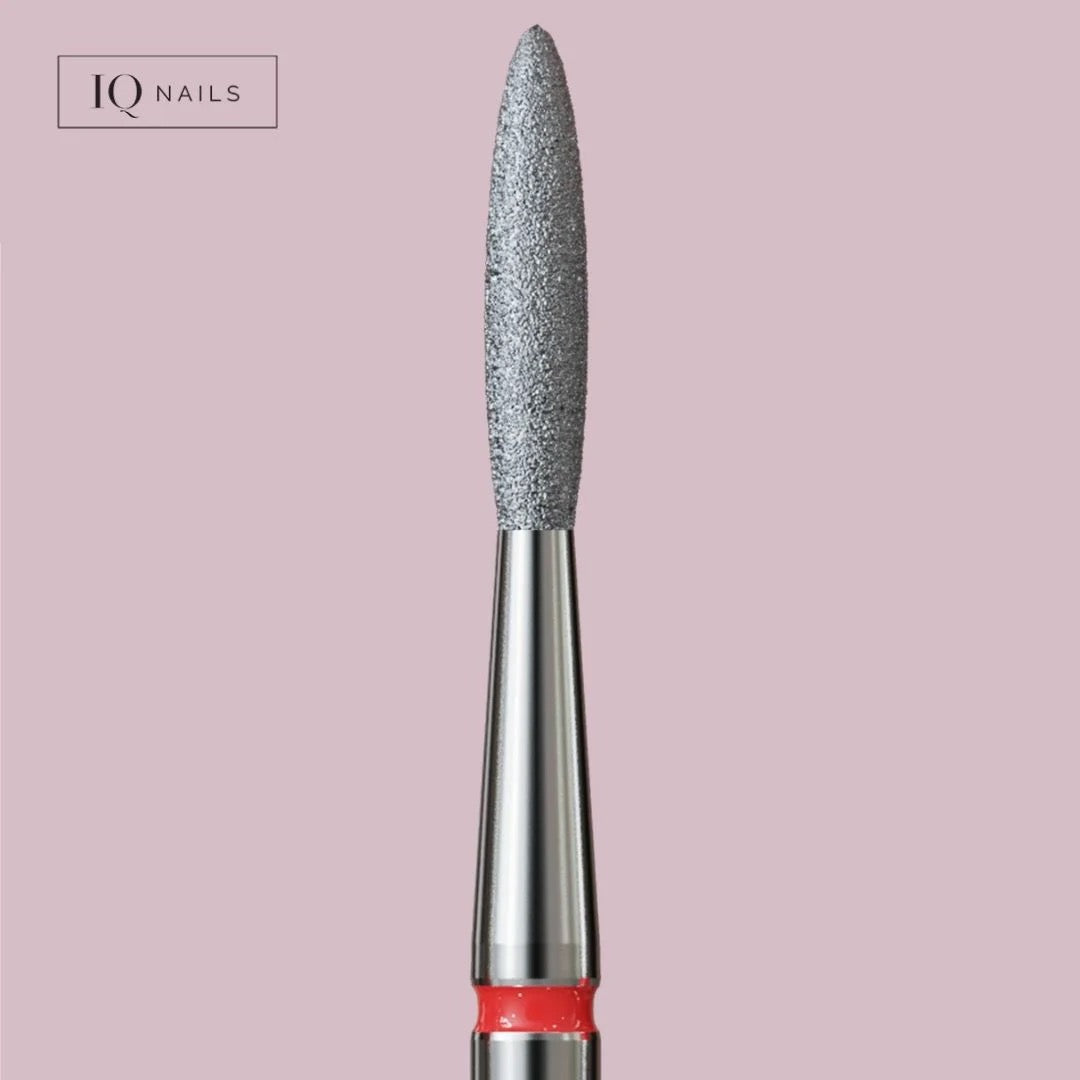 Fraise en diamant forme flamme grain rouge (doux) de la marque IQ Nails. S'utilise pour la préparation de la plaque de l'ongle et pour éliminer et nettoyer les cuticules ainsi que le repli latéral. Cette fraise permet d'optimiser l'adhésion du gel à l'ongle naturel et d'éviter les décollements. Elle est parfaite pour soulever les cuticules en technique de manucure russe, et pour gommer les callosités sur le pourtour de l'ongle. Diamètre de la tête : 1,8 mm.
